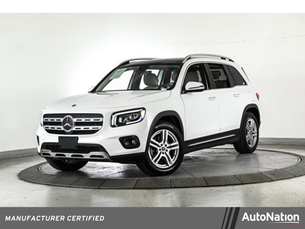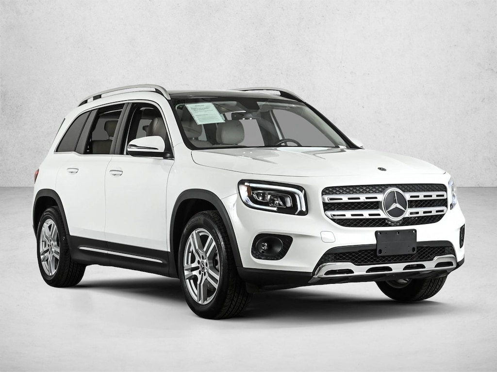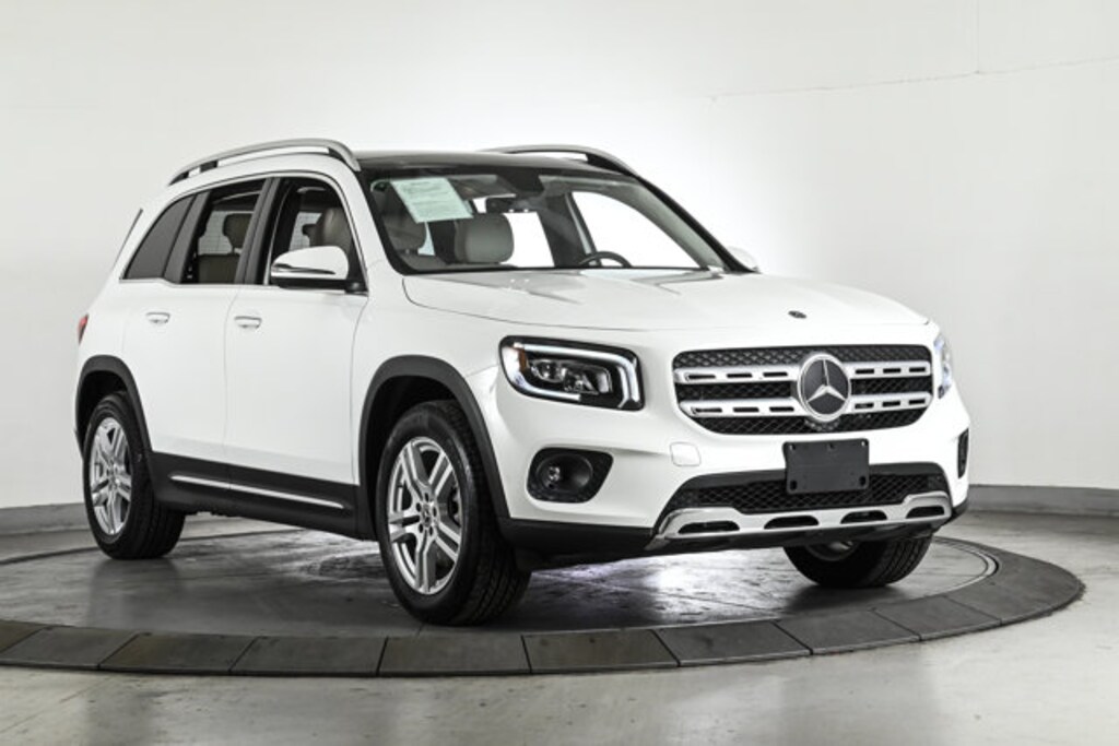 Certified 2022 GLB250W4 All Wheel Drive in Polar White/Macchiato Beige in Premium Package, Panorama Sunroof, Heated Steering Wheel, Heated Front Seats, Multi-color Ambient Lighting, Natural Grain Brown Walnut Wood Trim & 18 5-Spoke Wheels