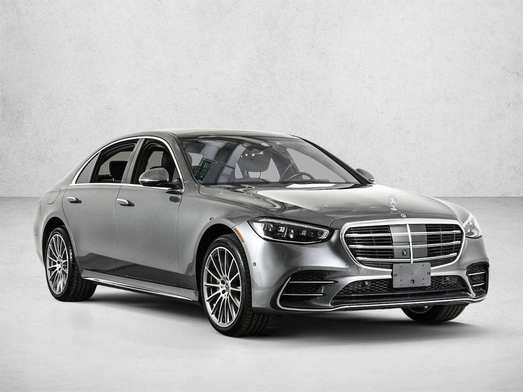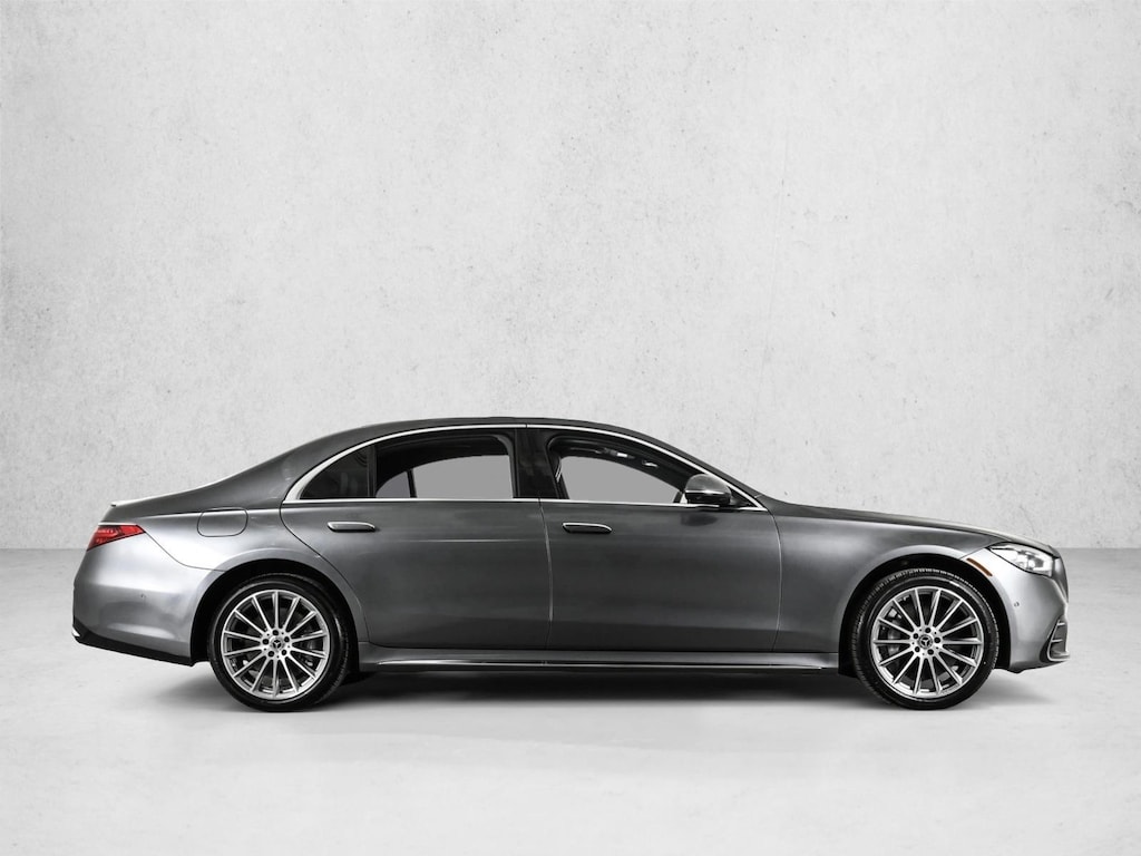 2022 S500V4 All Wheel Drive Selenite Grey Metallic/Black Leather with AMG Line Package, AMG Line Package, Rear-Axle Steering 4.5 Degree, Heated Steering Wheel, Active Ambient Lighting, Rear Spoiler/Body Color, Anthracite open-pore poplar Wood Trim & 20 AMG Multispoke Wheels with Grey Accents