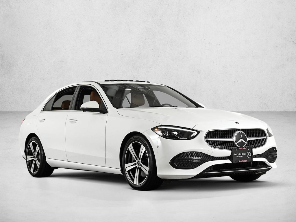 Certified 2025 X Loaner C300W4 All Wheel Drive in Polar White/Sienna Brown MB-Tex with Exclusive Line, Heated Steering Wheel, Winter Package, Natural Grain Walnut Wood Trim & 18 5-Spoke Wheels