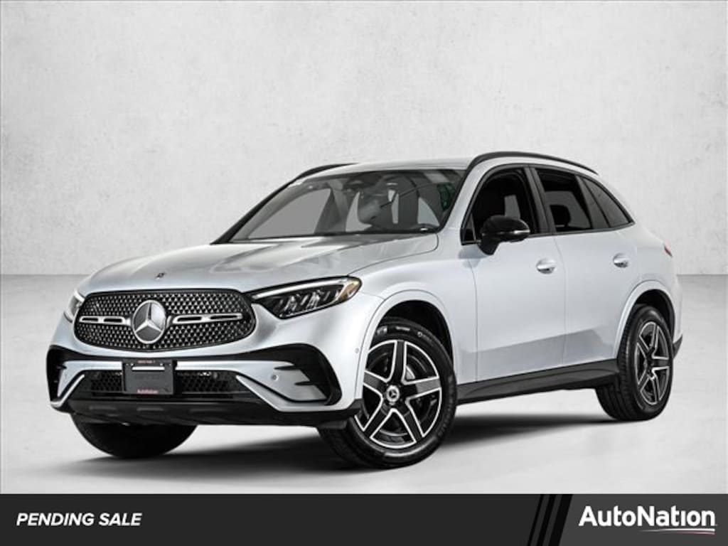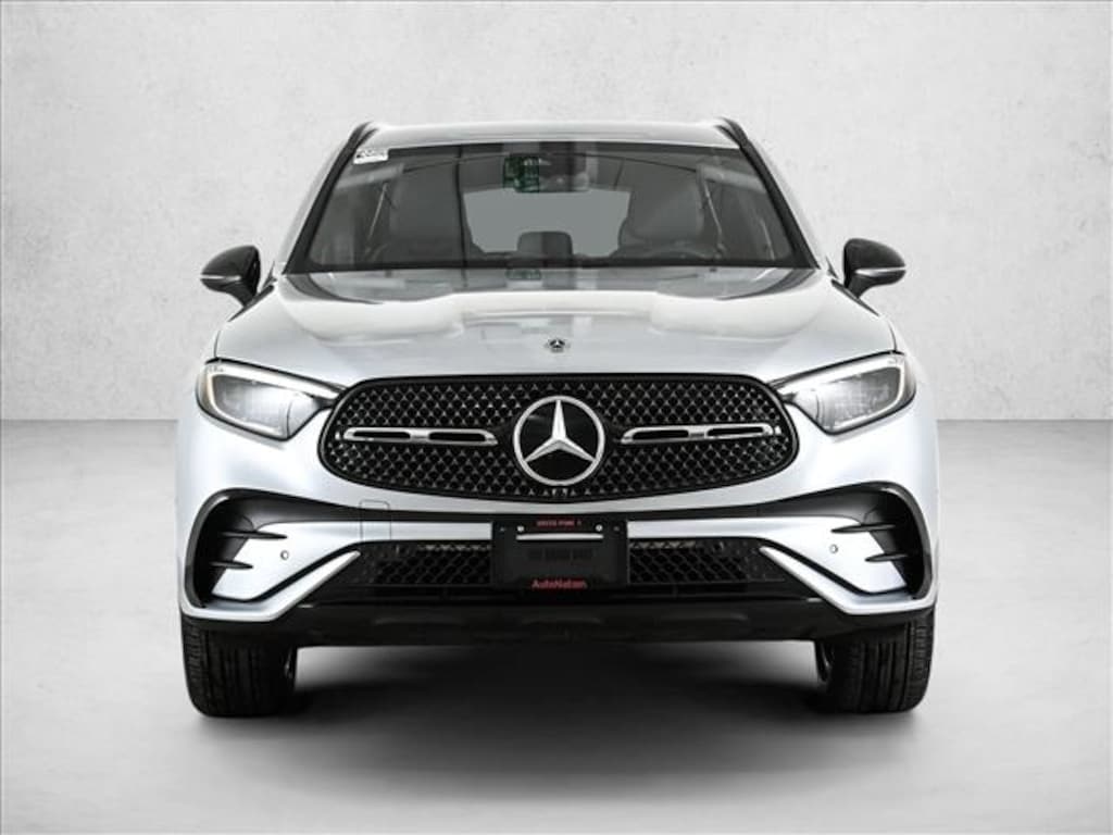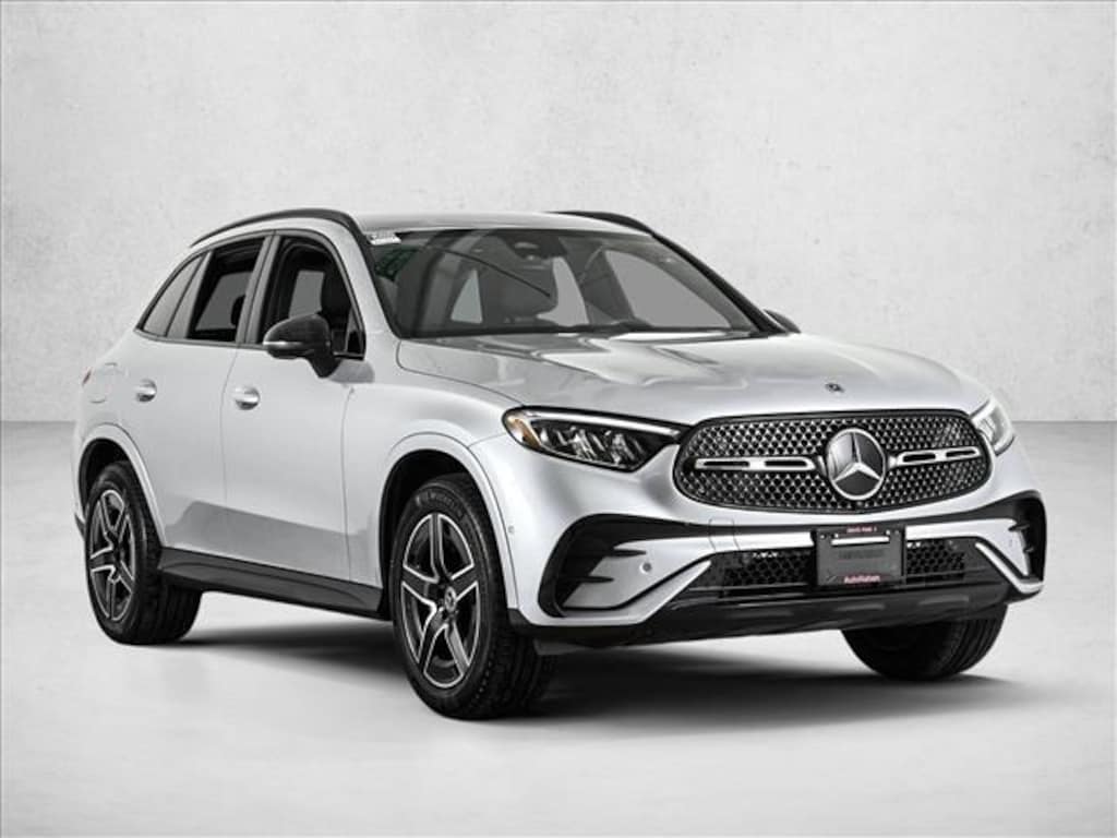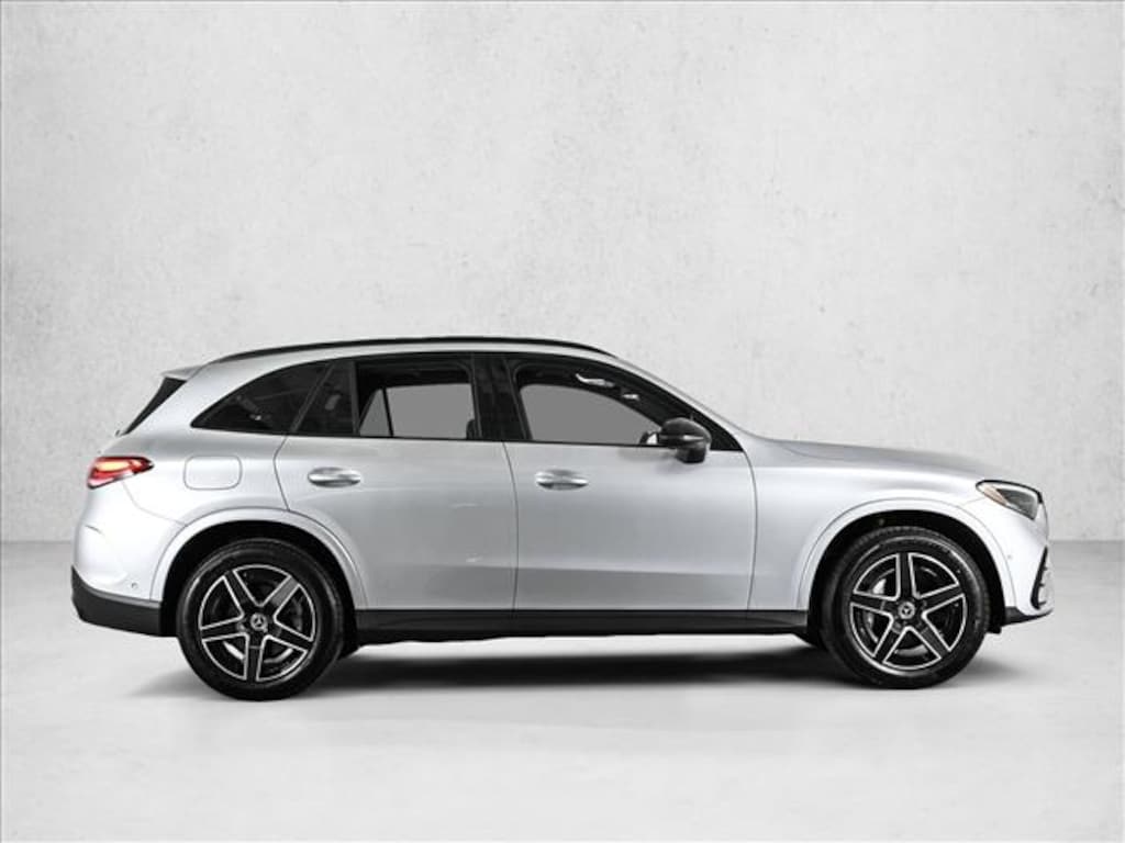 Certified 2025 X Loaner GLC300W4 All Wheel Drive in Cirrus Silver Metallic/AMG Black MB-Tex with AMG Line Package, Night Package, Heated Steering Wheel, Natural Grain Walnut Wood Trim & 19 AMG 5-Spoke Wheels w/Black Accents