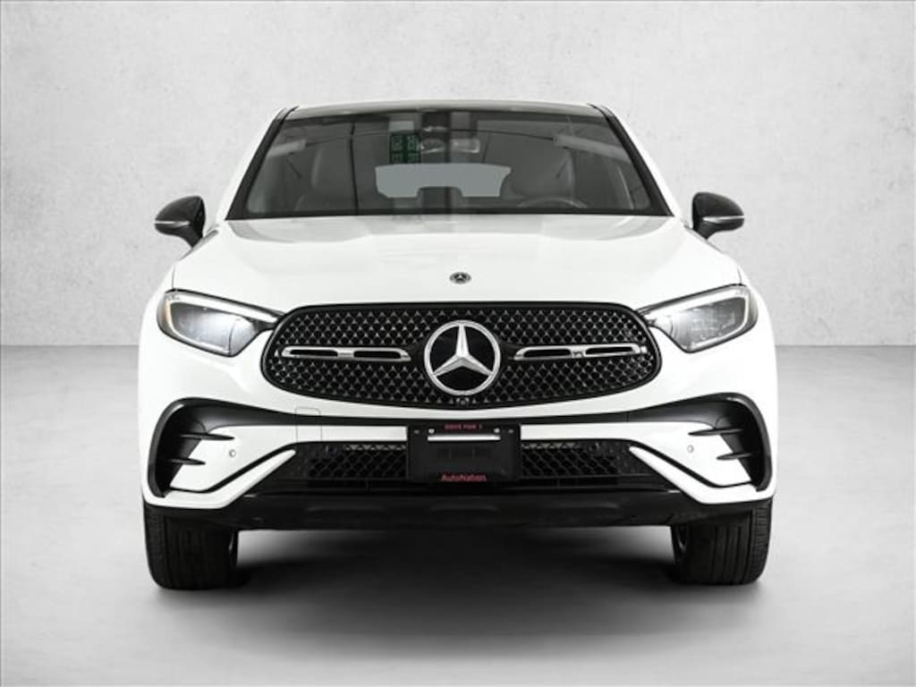 Certified 2025 X Loaner GLC300C4 All Wheel Drive Polar White/AMG Black MB-Tex with AMG Line Package, Night Package, Heated Steering Wheel, Illuminated Star, Illuminated Door Sills, Rear Spoiler/Body Color, Animated LED Logo Projector, Fineleline Anthracite Wood Trim & 19 AMG 5-Spokje Wheels w/Black Accents