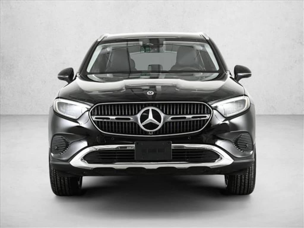 Certified 2025 X Loaner GLC350E4 in Black/Black MB-Tex with Exclusive Line, Panorama Sunroof, Enhanced USB Package, Illuminated Star, LED Logo Projectors, Natural Grain Walnut Wood Trim & 18 5-Spoke Wheels