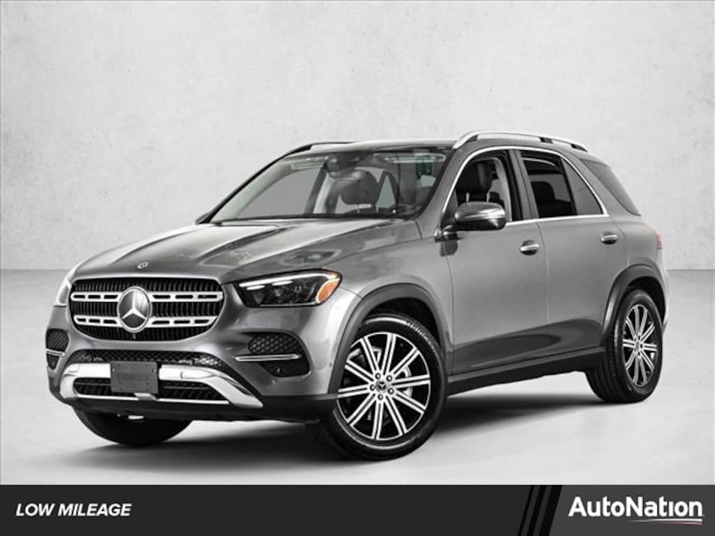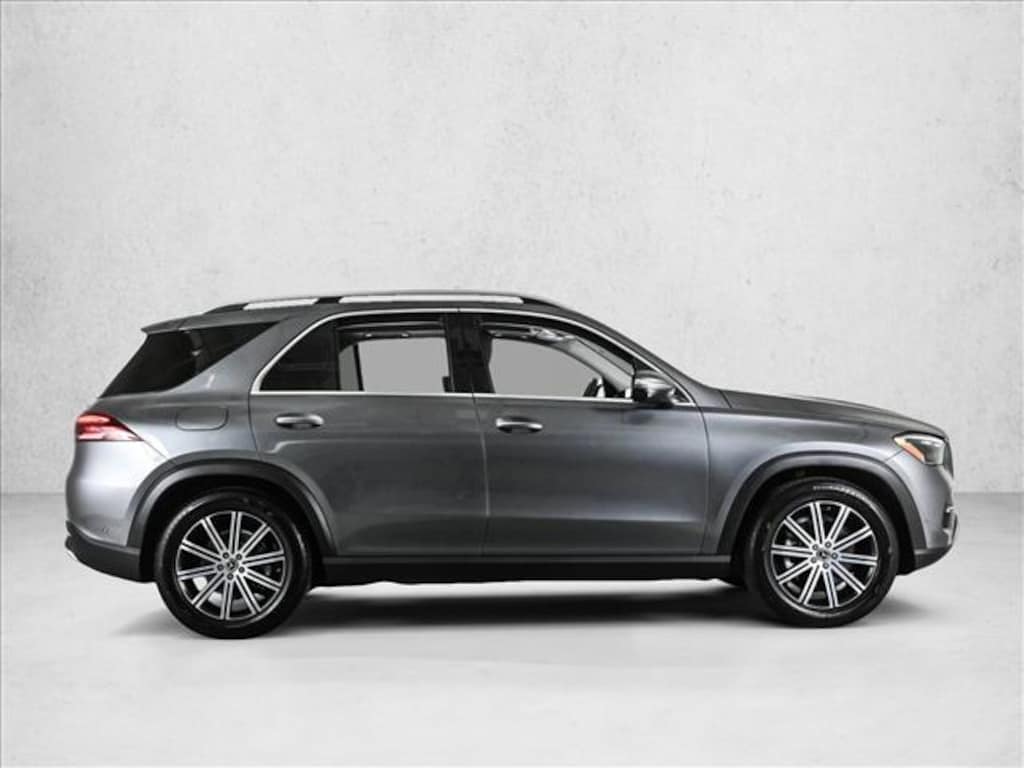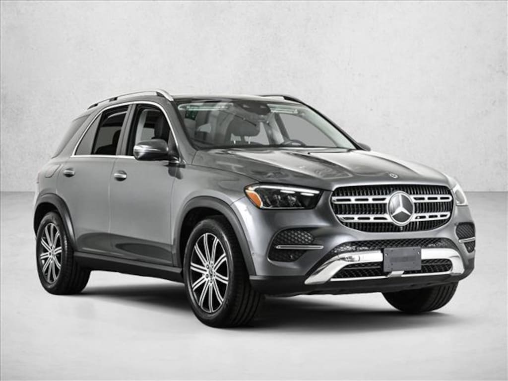 Certified 2025 GLE350W4 All Wheel Drive in Selenite Grey Metallic/Black MB-Tex with Exclusive Trim, Driver Assistance Package, 3rd Row Seat Package, Panorama Sunroof, Trailer Hitch, Heated Rear Seats, Natural Grain Brown Walnut Trim, Load Sill Protector & 20 Multispoke Wheels